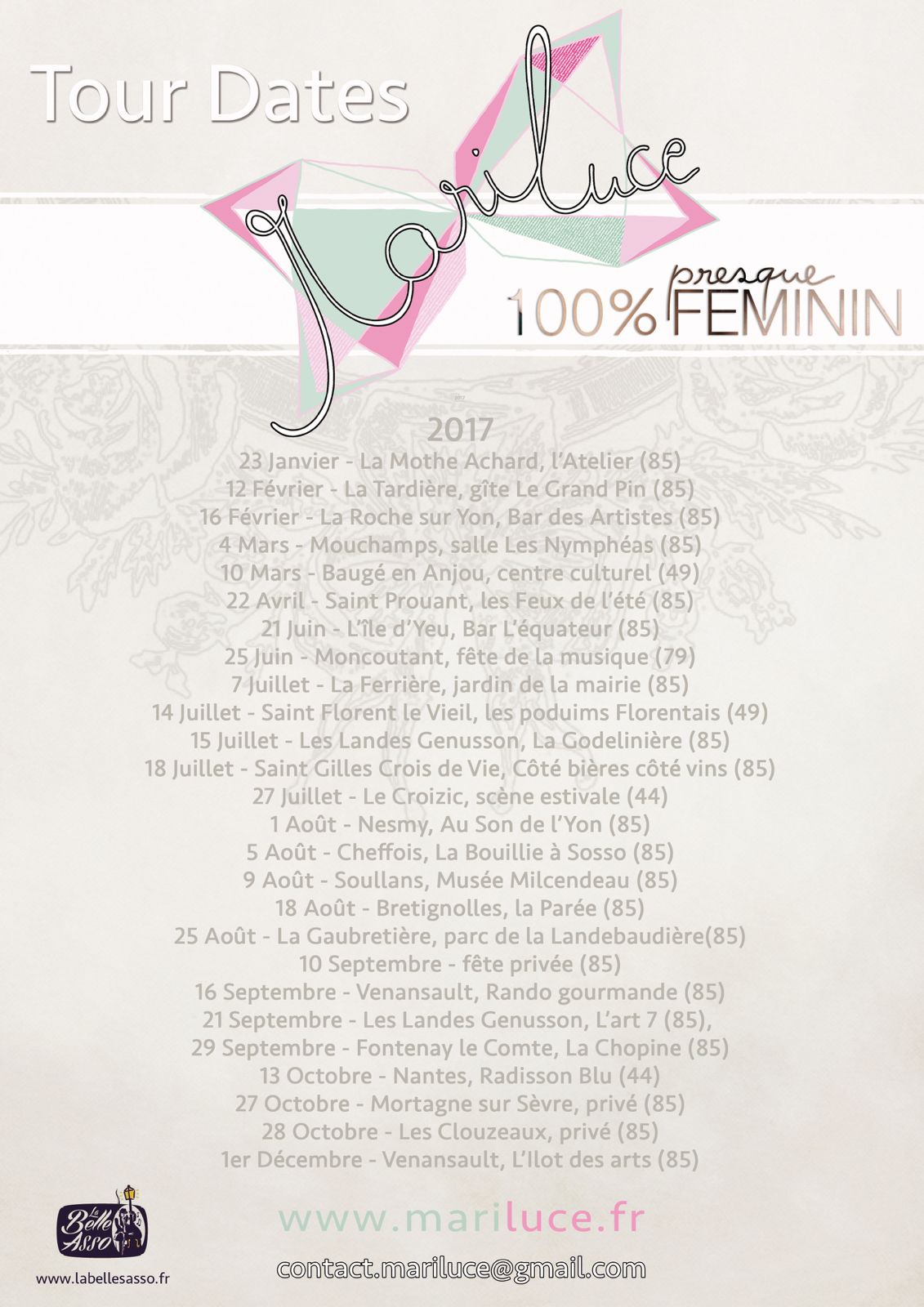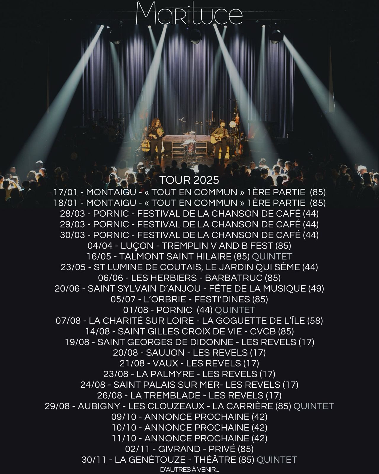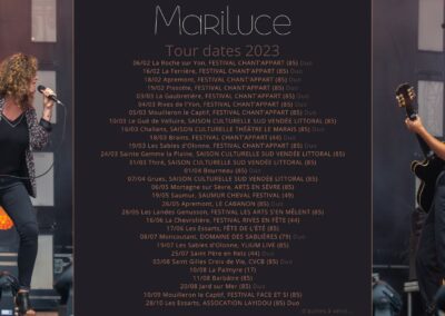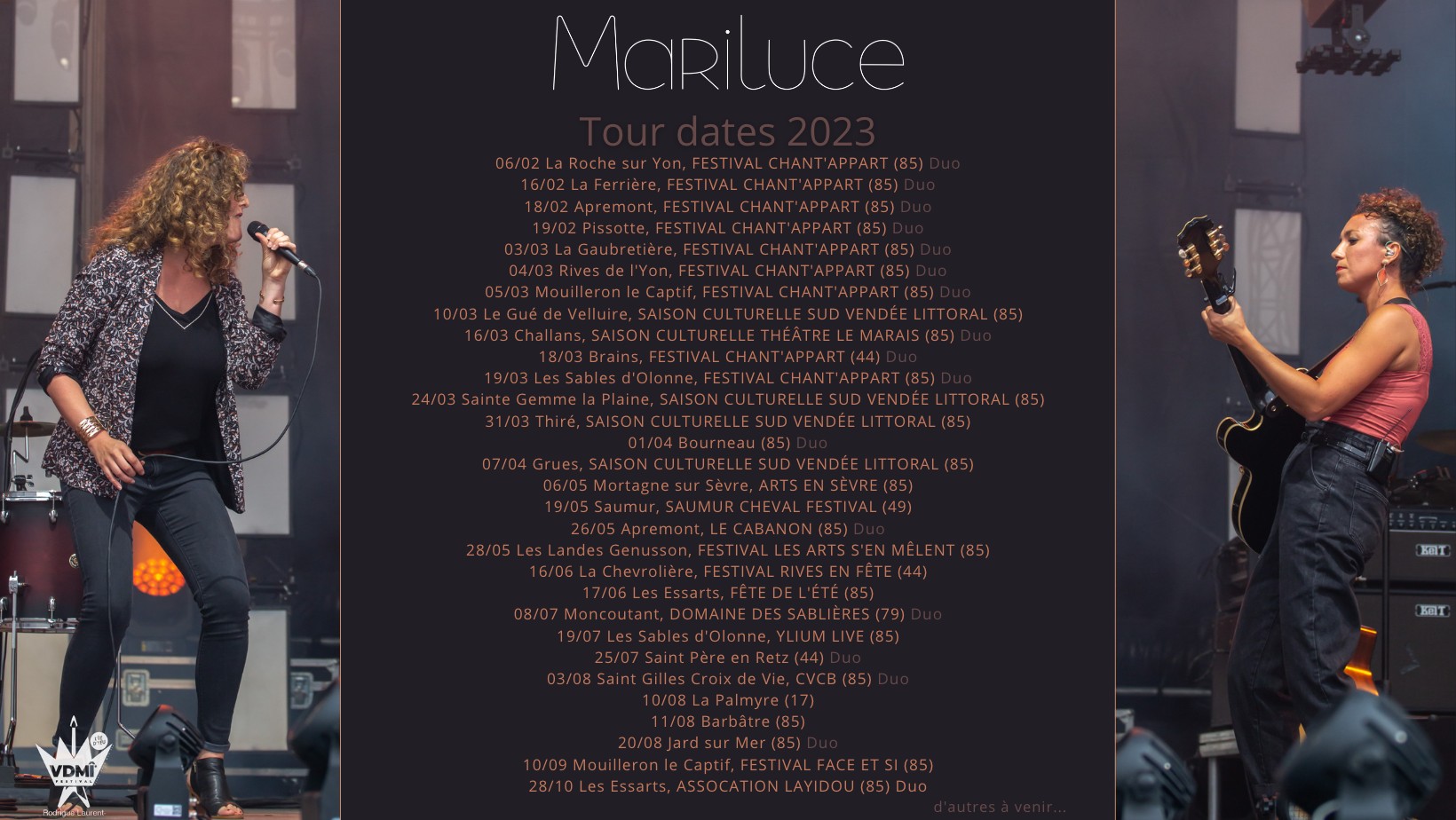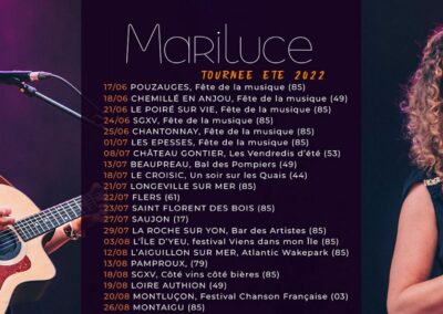Un univers musical qui balade son ADN chanson française dans un style pop francophone. Une volonté, une direction : parler vrai dans une forme fédératrice et lumineuse, parce qu’on en a besoin ! Mariluce chante des histoires de vies ordinaires, et célèbre la Femme et la liberté sous toutes ses coutures.